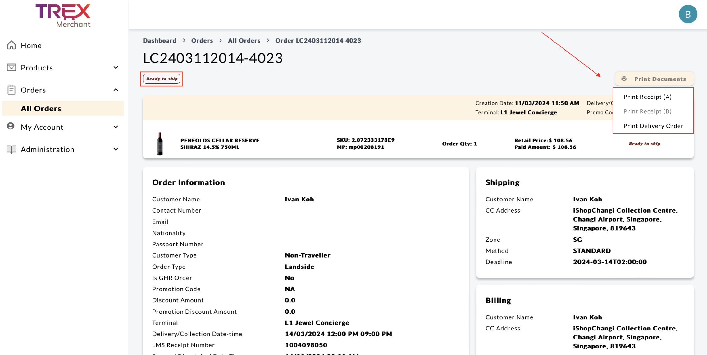 - Click on Print Documents ➡️ Print Delivery Order and Print Order Receipt