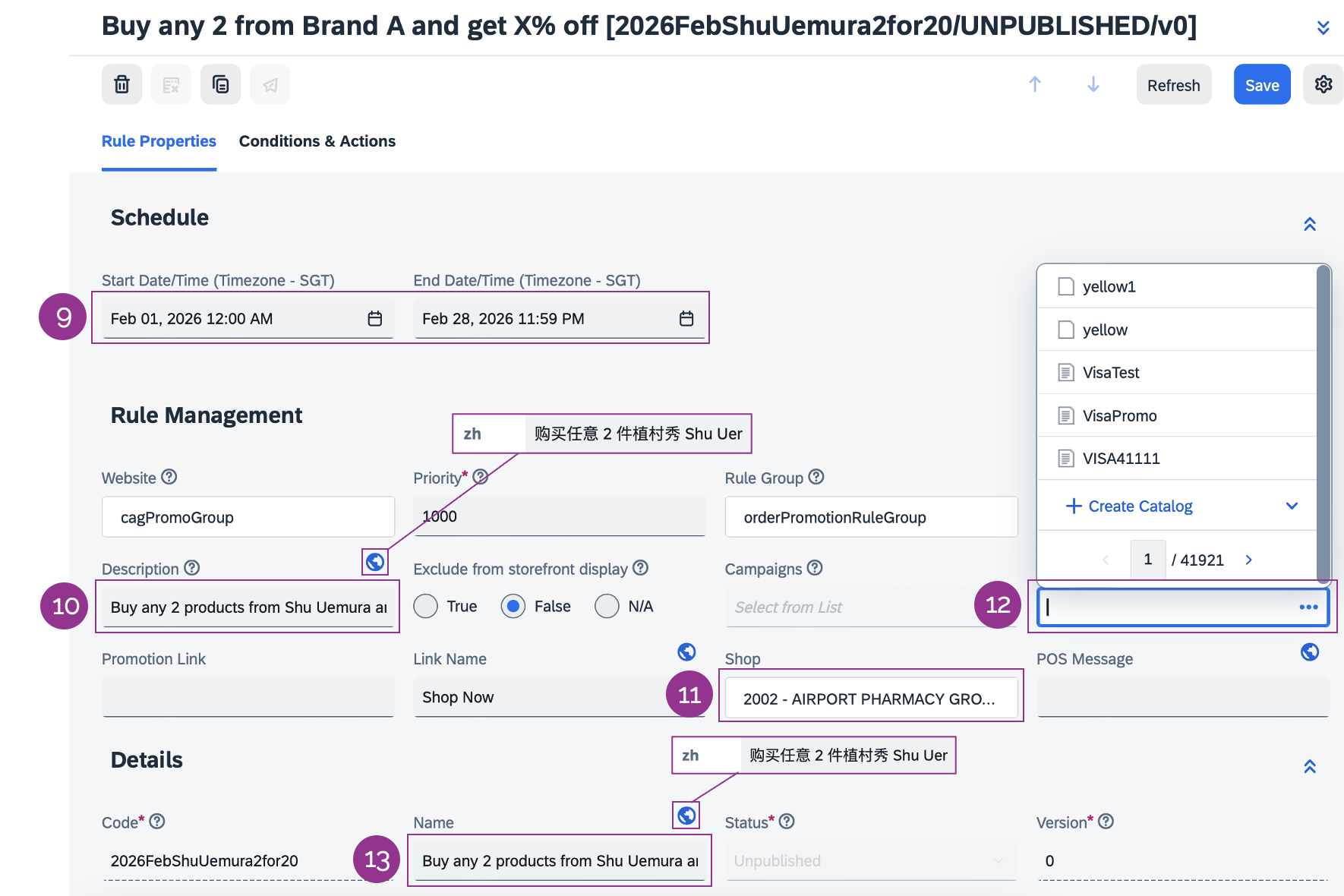 – Promotion Name (ZH) e.g., 于A店购买任意2件商品,仅需$X