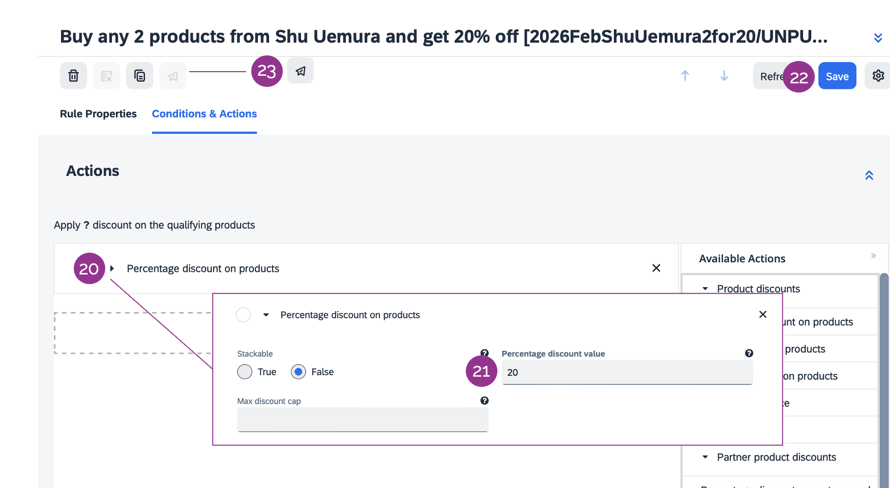 20. Click on Percentage discount on products to expand the section.