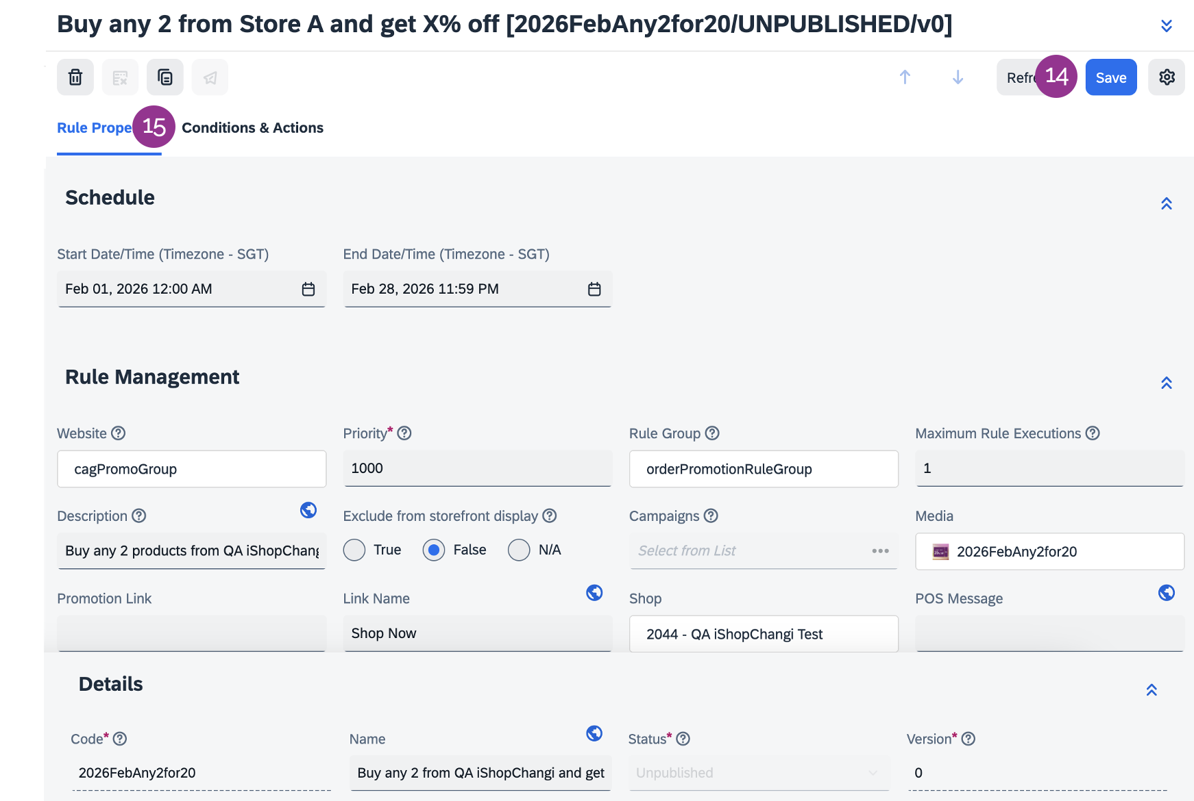 – Promotion Description (ZH) e.g., 于A店购买任意2件商品,可享X%折扣。活动截止至2026年2月28日。