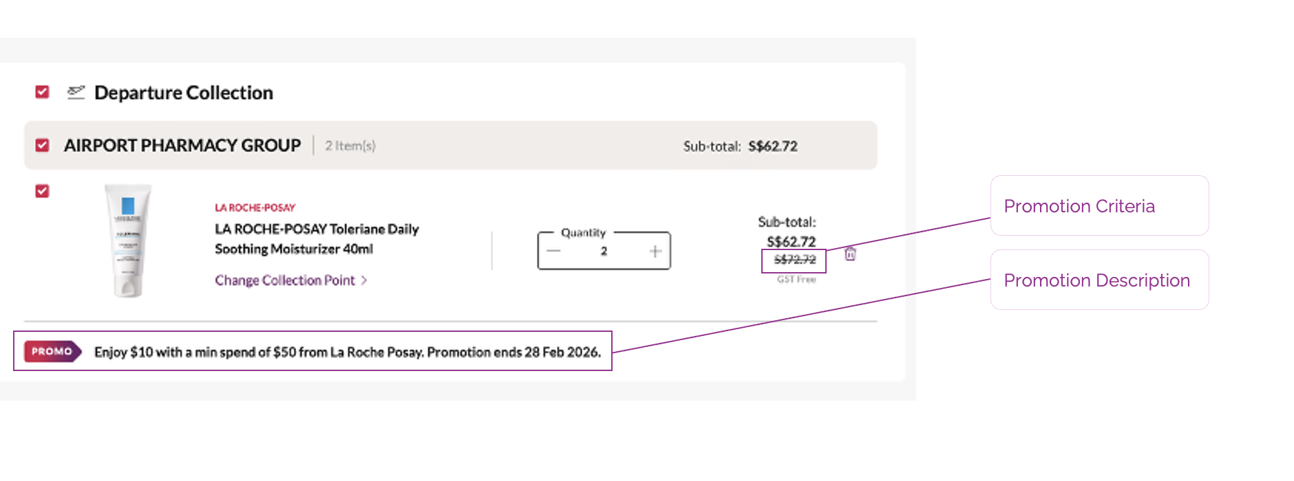 – Promotion Description (EN) e.g., Enjoy $X off with a min spend of $X from Brand A from Store A. Promotion ends 28 Feb 2026.