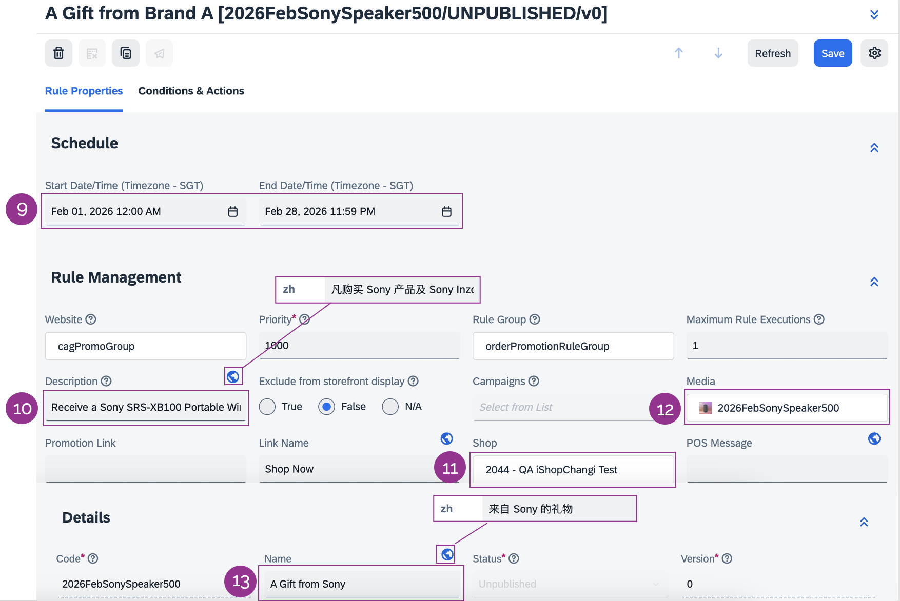 – Promotion Name (ZH) e.g., 来自A品牌的礼物