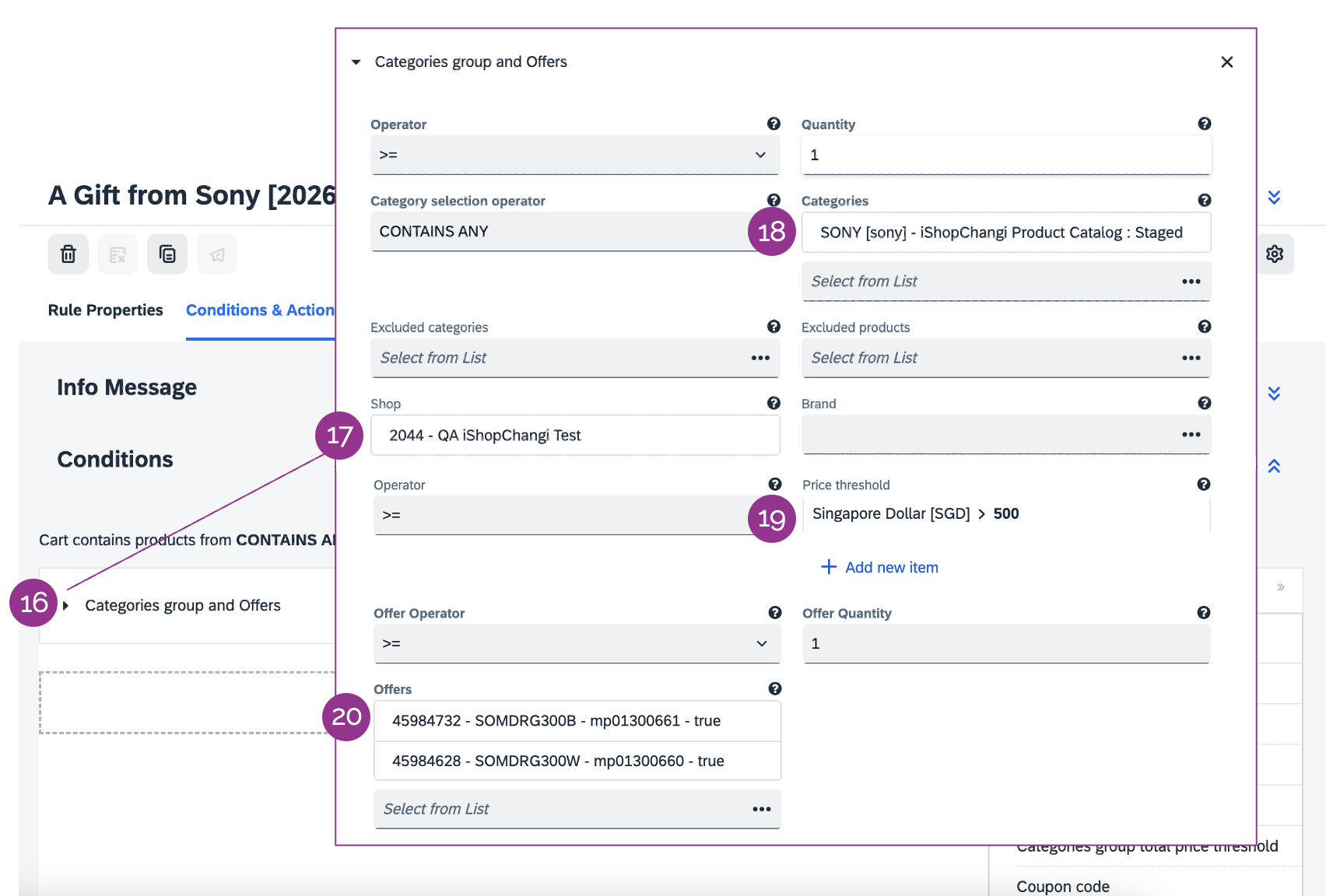 19. (Optional) For the Price threshold field, input the min. spend condition.