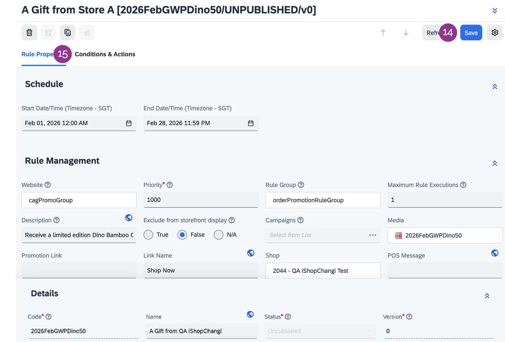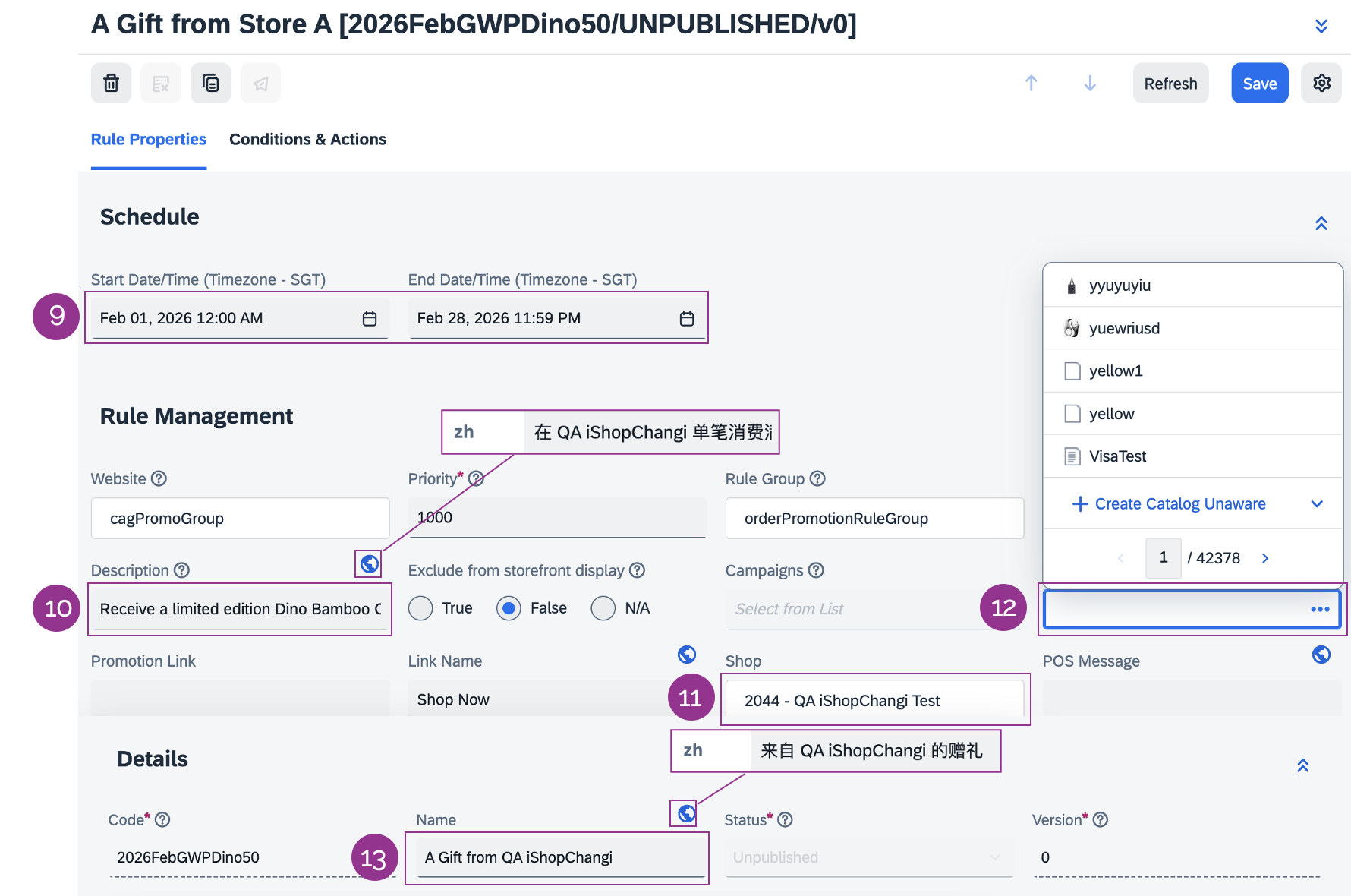 – Promotion Description (ZH) e.g., 于A店消费满$X,即可获赠限量版A礼品(价值$X)。活动截止至2026年2月28日。