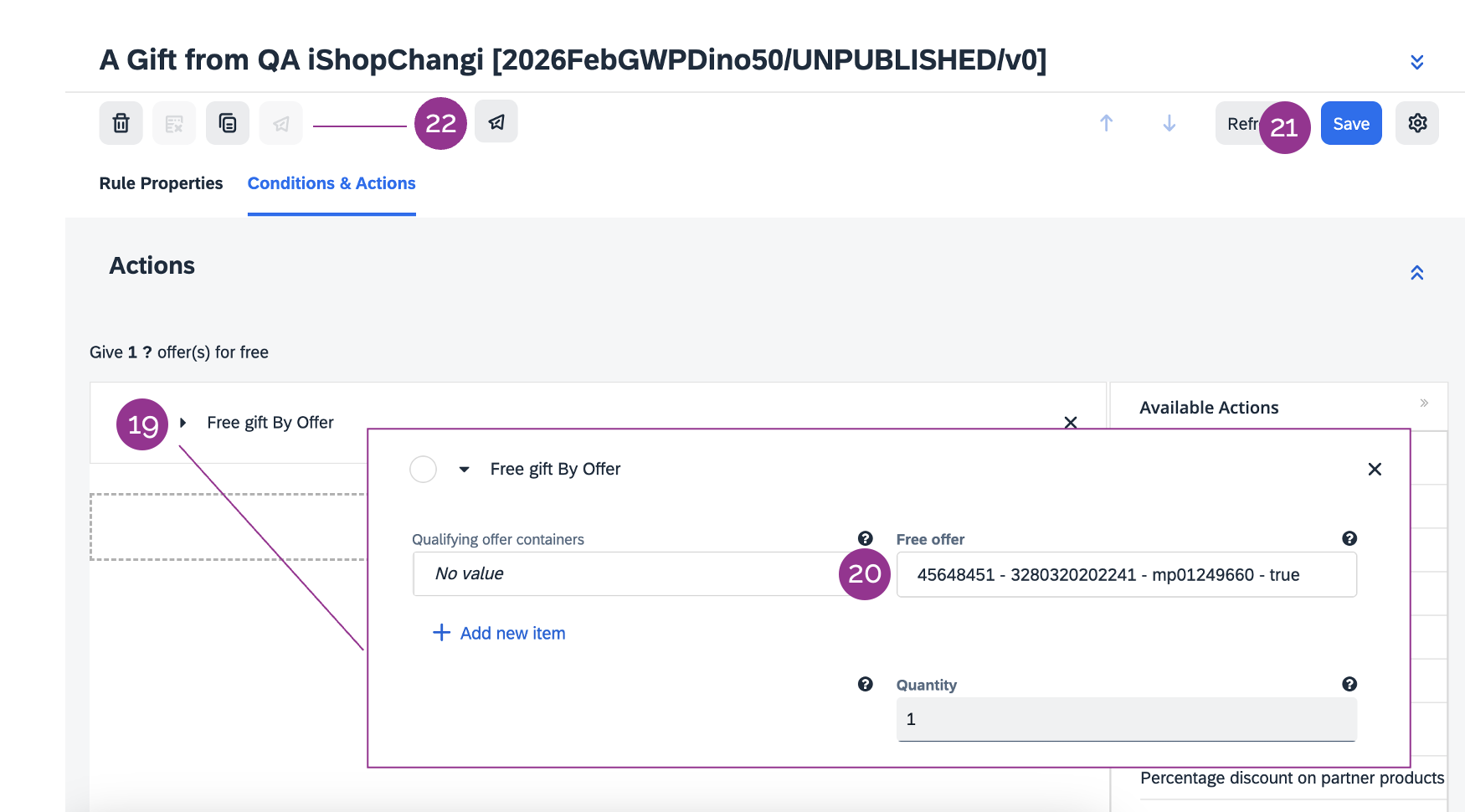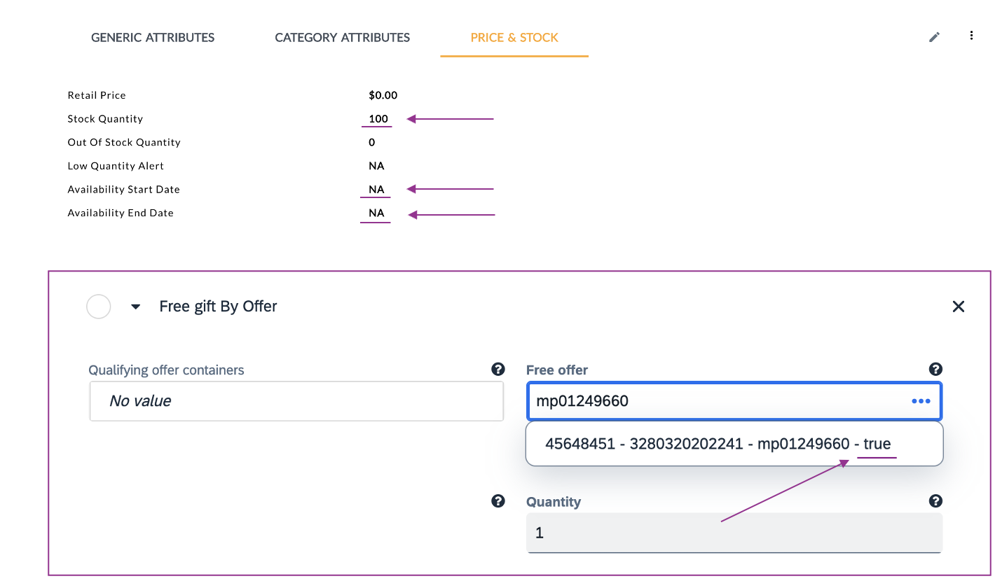 19. Click on Free gift by Offer to expand the section.
