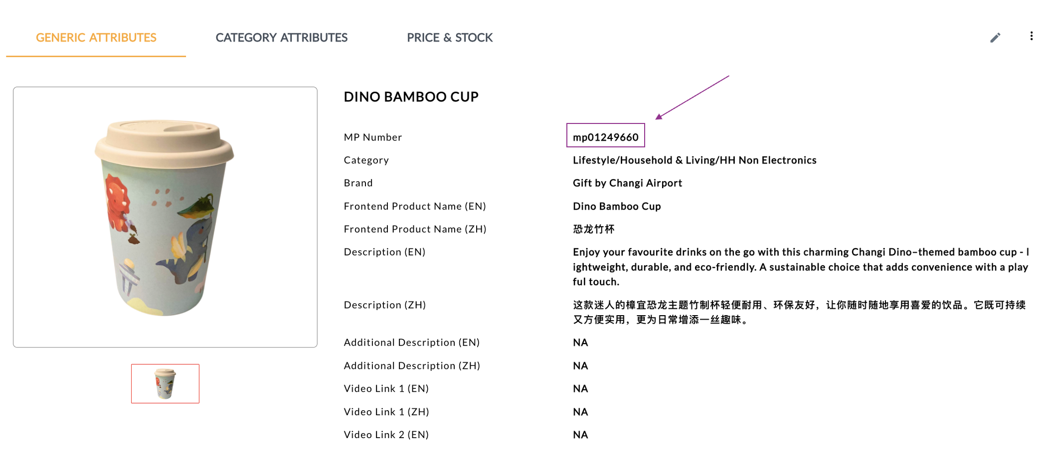 The mp# on the product page in TREX.