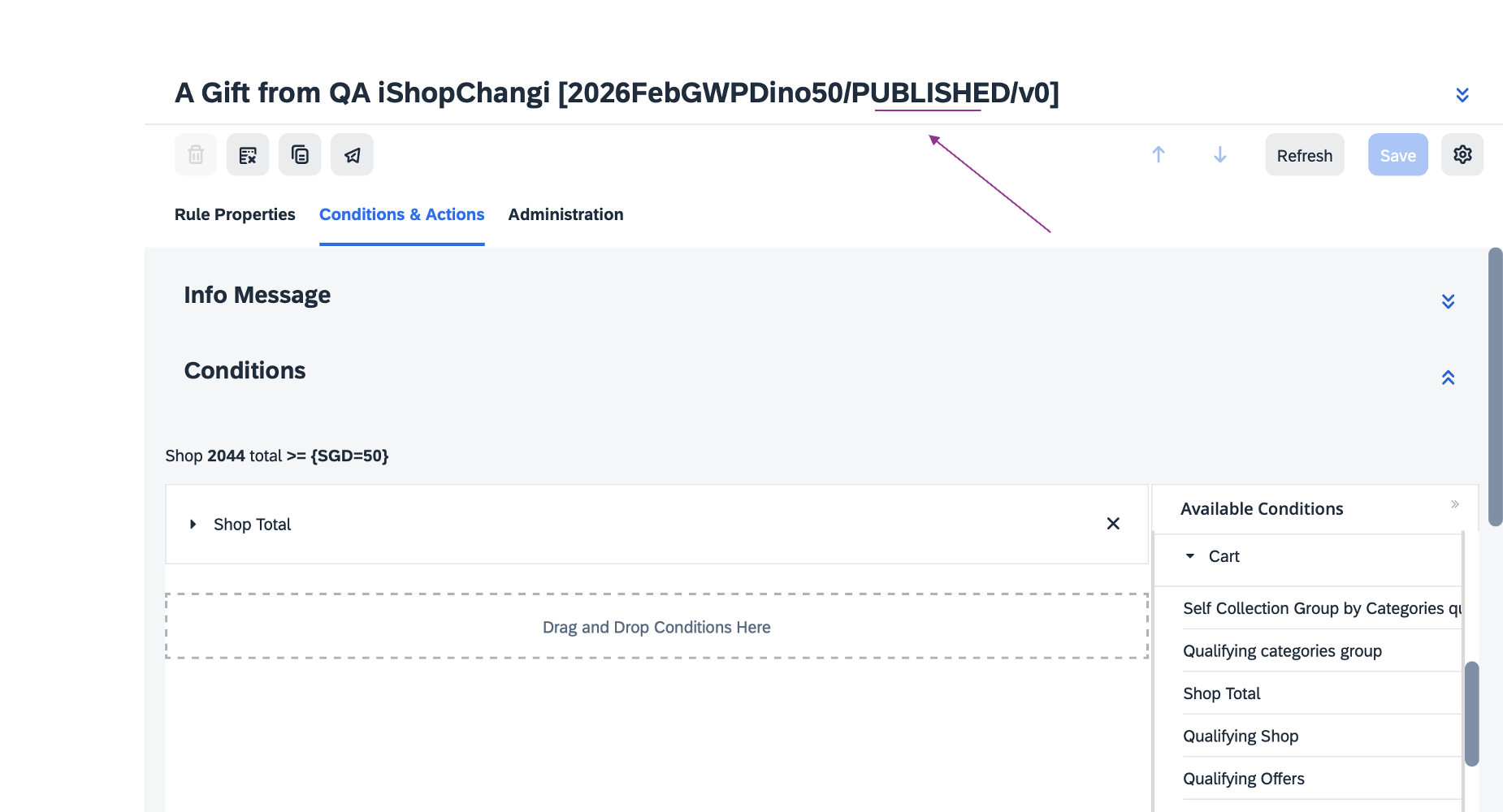 If the promotion applies to only one platform (WeChat Mini Program or iShopChangi website), please add the Qualifying By Channel condition (from the Available Conditions section on the right). Under Qualifying By Channel, click Channel Type ➡️ select the applicable channel.