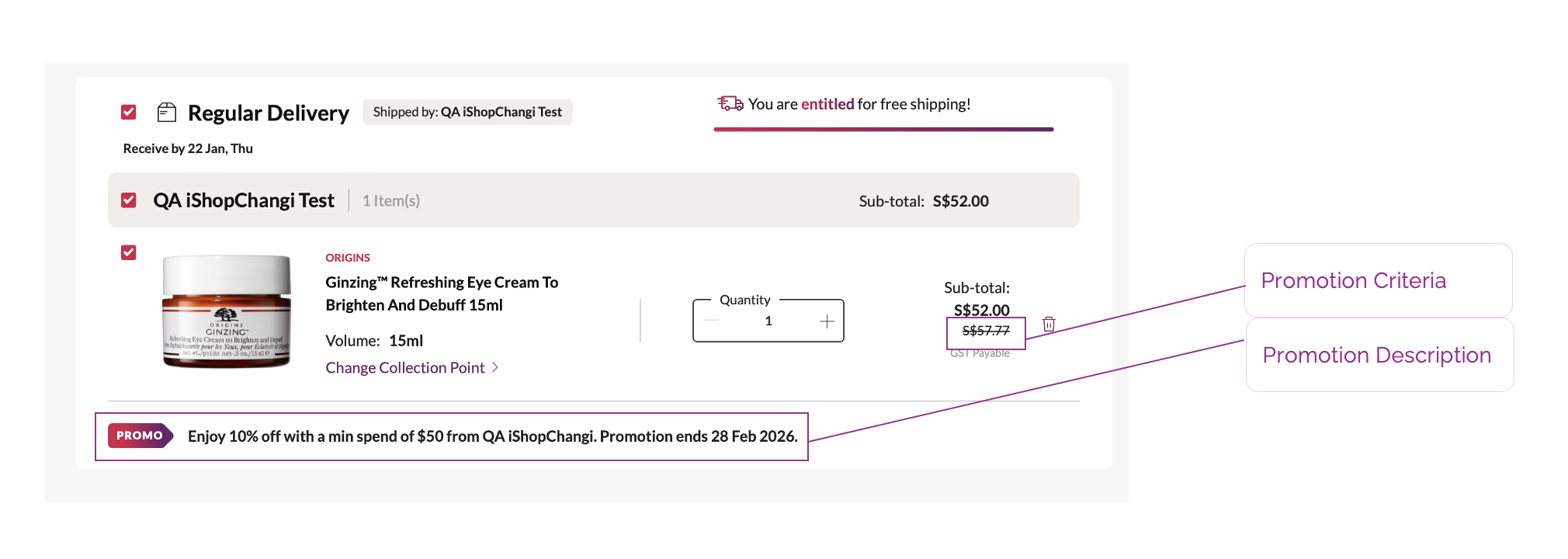– Promotion Description (EN) e.g., Enjoy X% off with a min spend of $X from Store A. Promotion ends 28 Feb 2026.