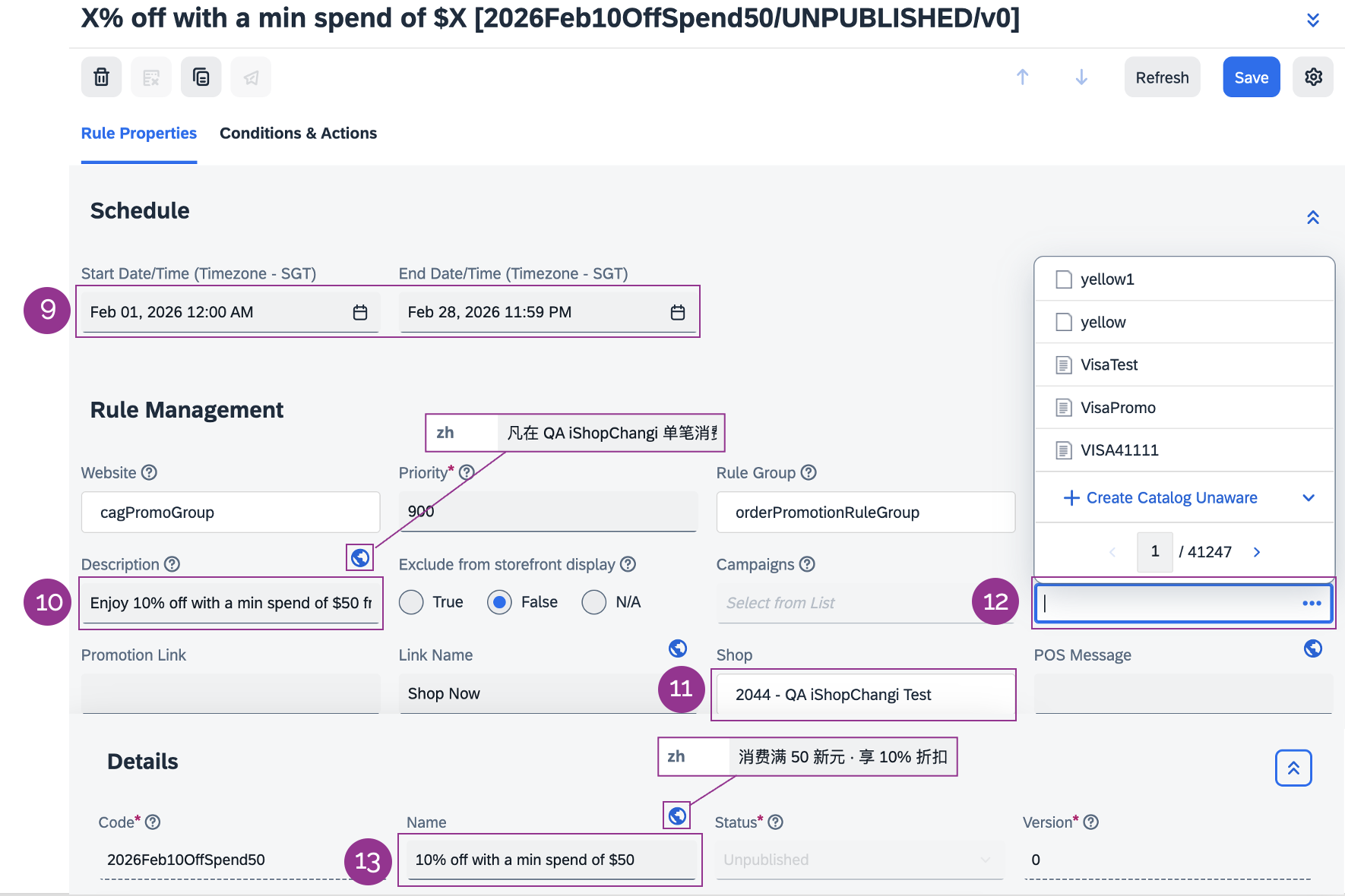 – Promotion Name (ZH) e.g., 消费满$X,可享X%折扣