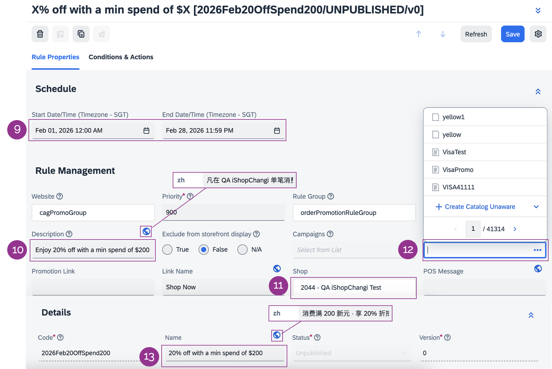 – Promotion Name (ZH) e.g., 消费满$X,可享X%折扣