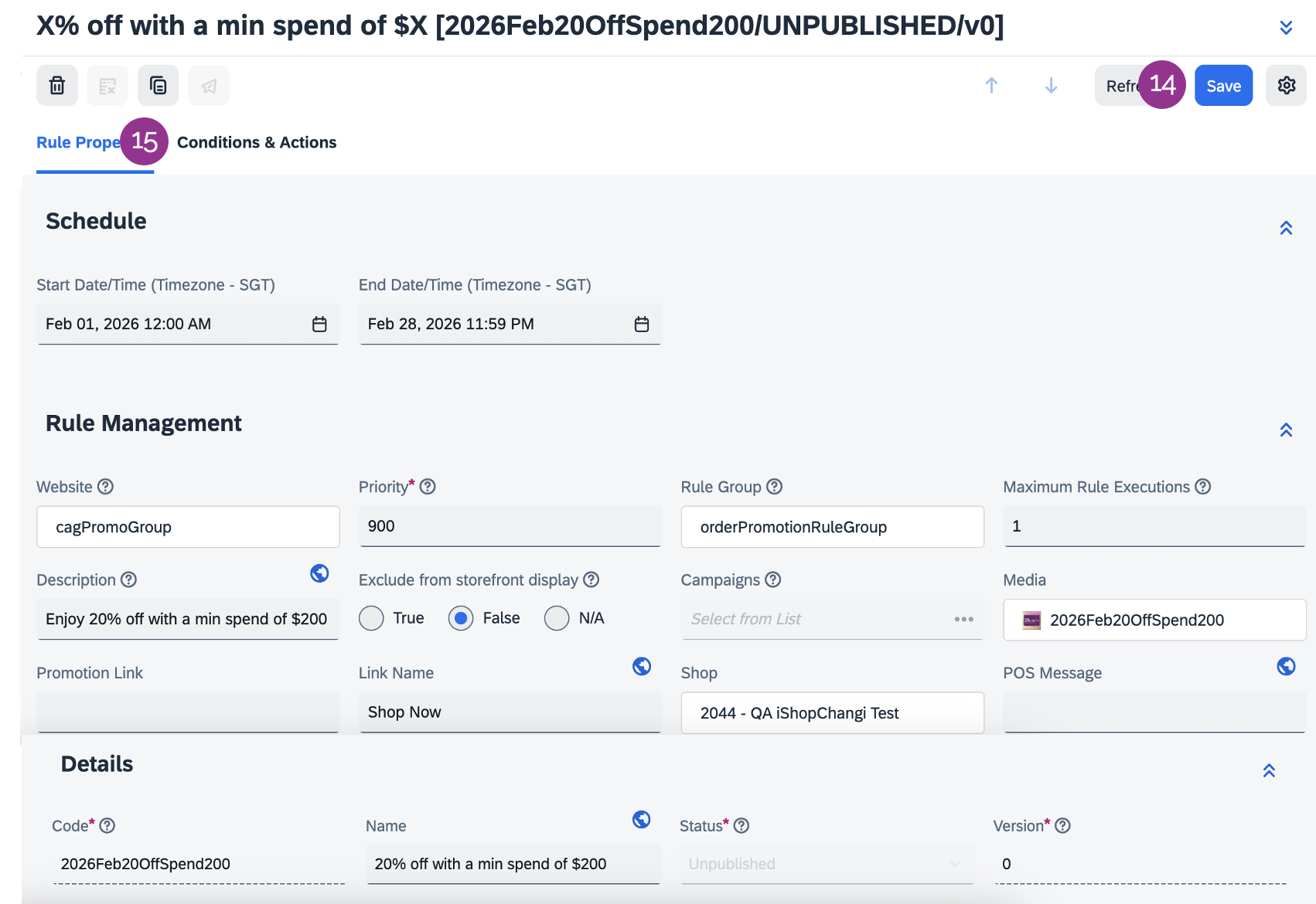 15. Click on the Conditions & Actions Tab.