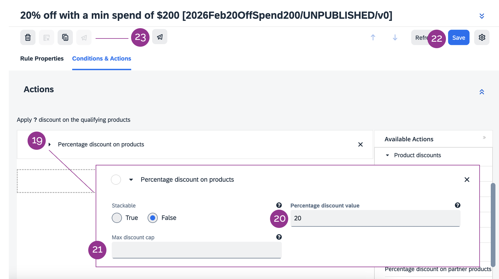 19. Click on Percentage discount on products to expand the section.