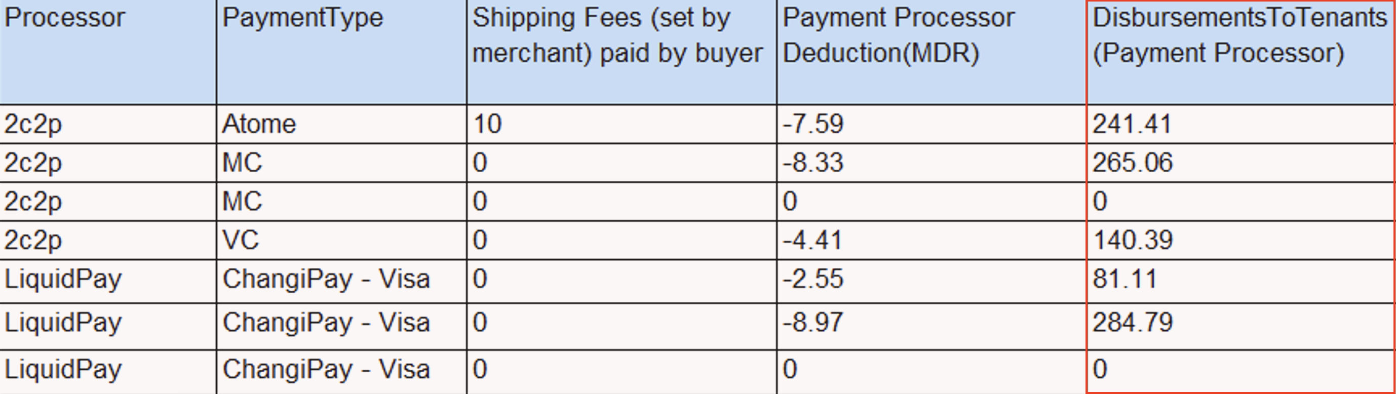 DisbursementsToTenants(Payment Processor) (Column AX):