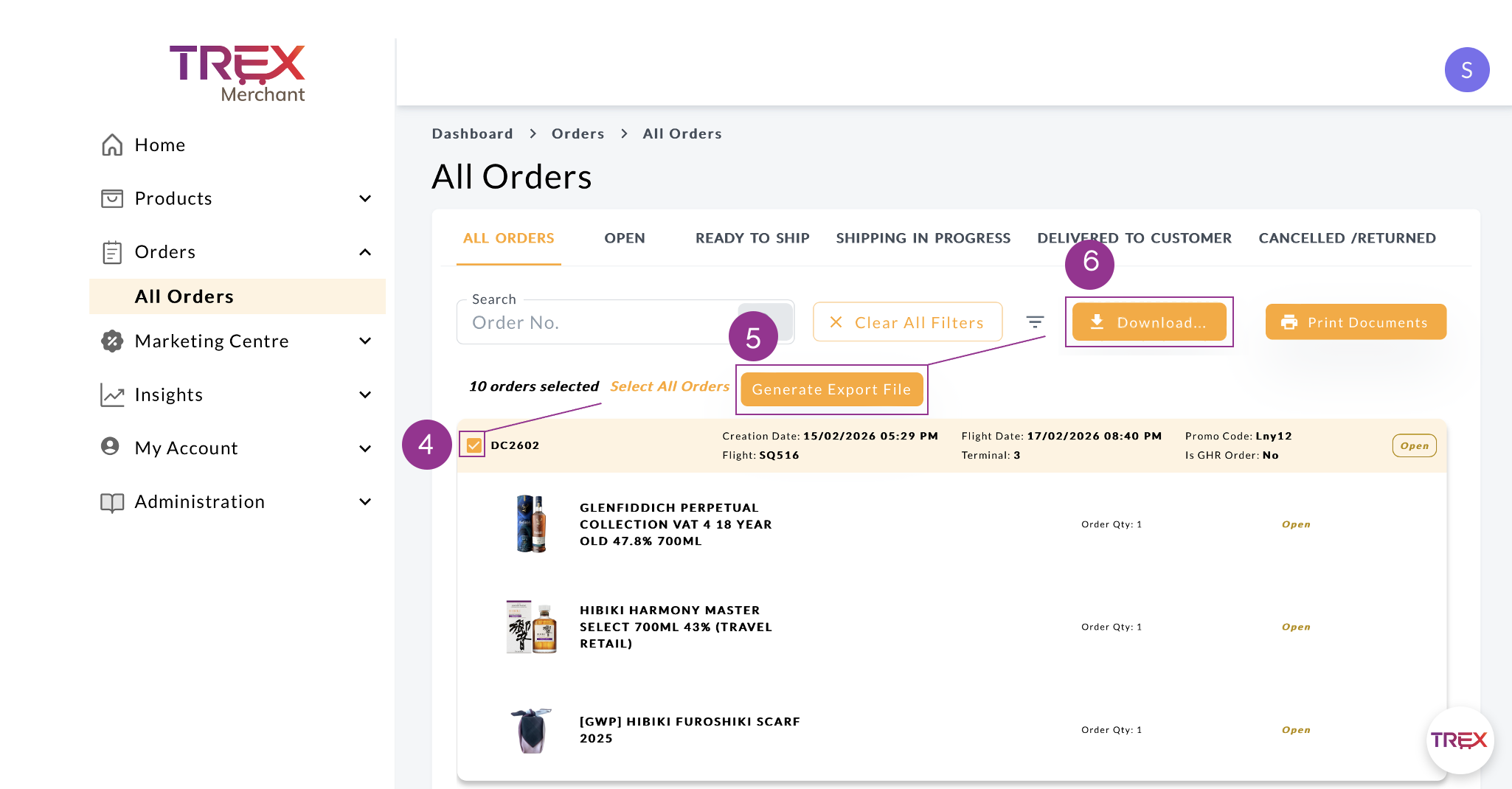 4. Tick the checkbox of the orders that you would like to export or click on Select All Orders