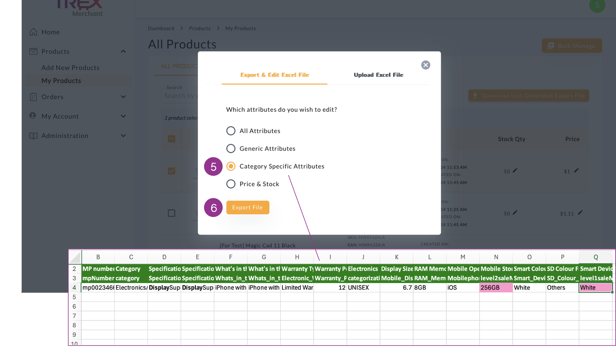 7. Edit the field/attribute that requires editing and save the changes in the file. In TREX, click on the Upload Excel File tab.