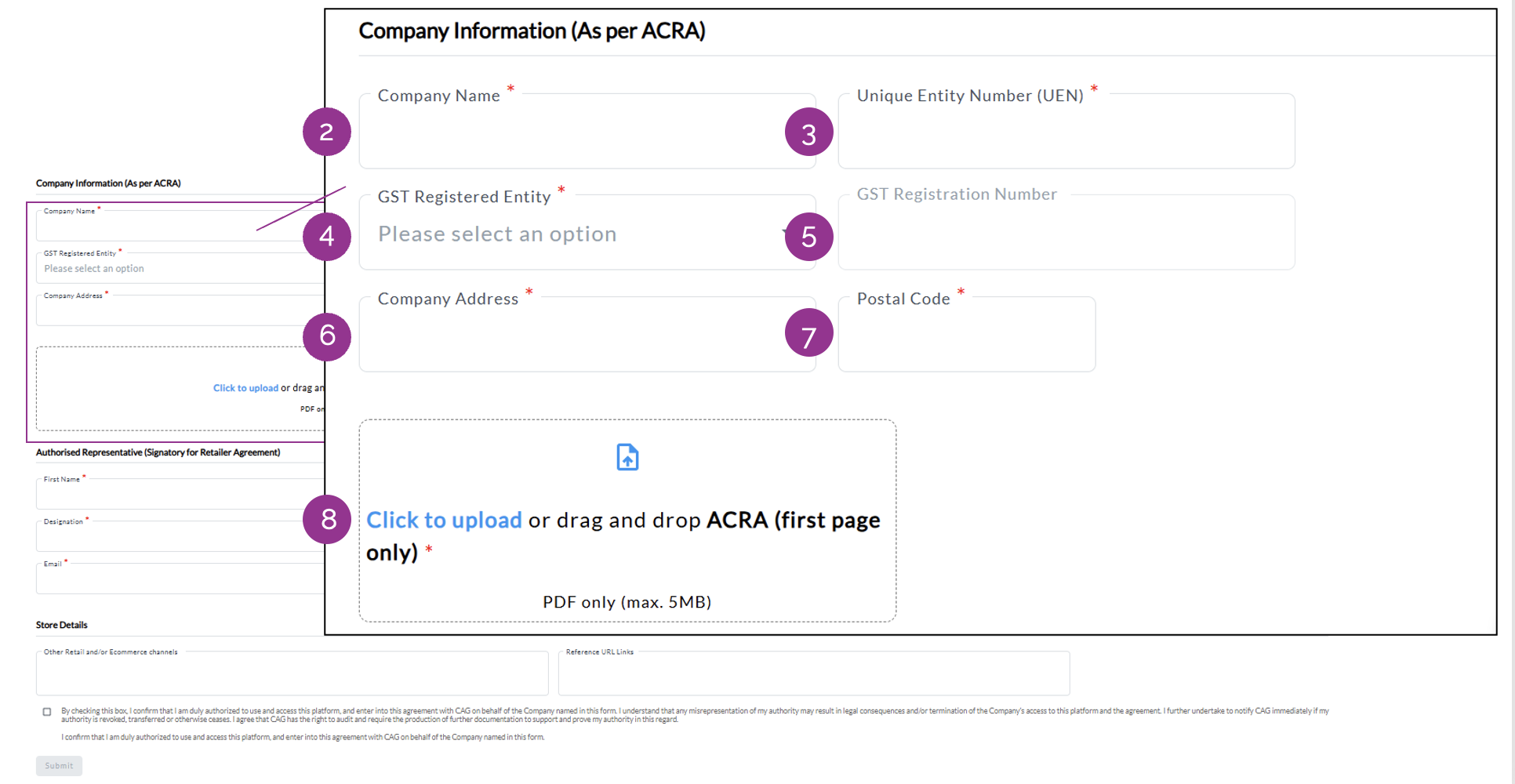 8. Upload the first page of the ACRA document.
